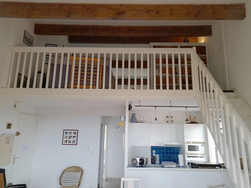 Trés bel appartement de type T2 Mezzanine de 67 m² loi carrez, dont une mezzanine de 25 m² habitables (possibilité de la fermer pour y réaliser une 2 ème chambre), le logement se compose d'un espace de vie dont cuisine aménagée et ouverte, 1 chambre avec placards, une salle d'eau avec wc. Logement vendu meublé. Dans le prolongement du séjour, vous avez accès à une belle terrasse de 13 m² avec une vue imprenable de la mer, du Port et de la montagne.Ce bien est exceptionnel sur Port-Vendres car ce bien est vendu avec un grand garage 22 m², une cave de 4 m² et une place de parking privé. Contact Joël 06 34 35 03 89