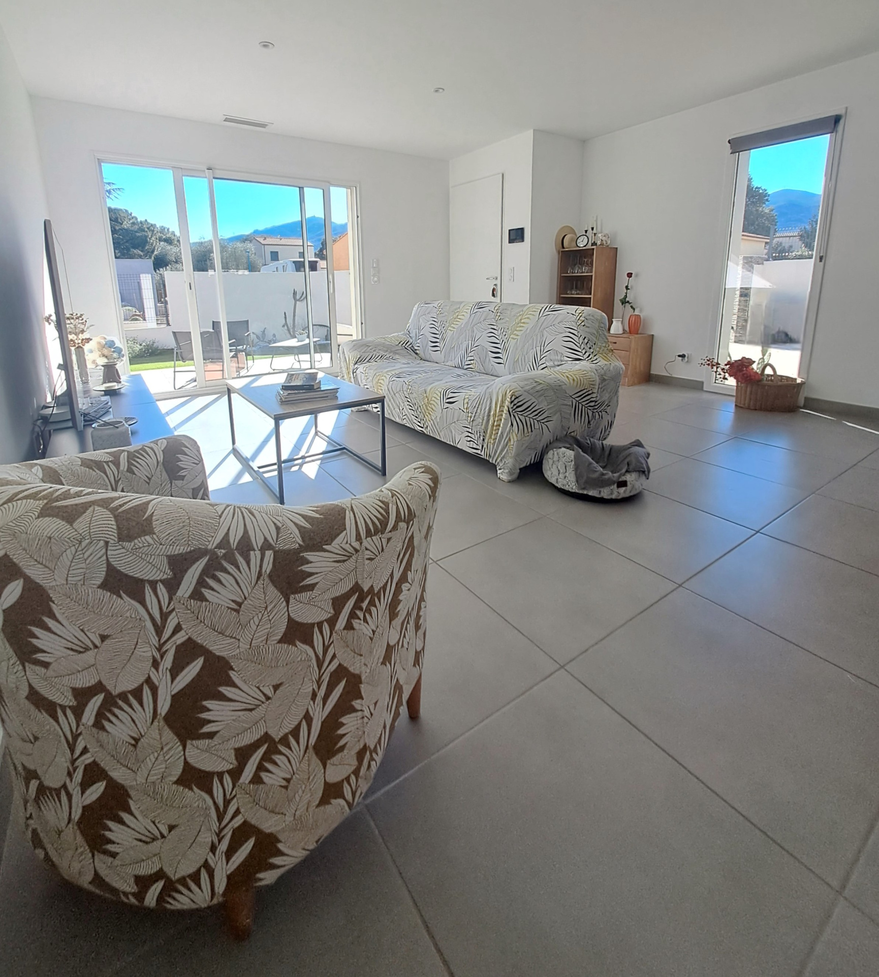 Belle villa 3 faces lumineuse avec vue sur la montagne de 90 m² habitables sur parcelle de 322 m². Comprenant belle pièce de vie de 37 m² ouverte sur la cuisine aménagée, 3 chambres avec placards, dont une suite parentale avec son dressing, deux WC dont un séparé avec fenêtre et lave main. Les deux salles d'eau sont équipées de douches à l'italienne. Chauffe-eau thermodynamique et une climatisation gainable et réversible. Exposition Sud-Ouest. Grande terrasse de 35m2 arborés et aménagés sans aucun entretien. Possibilité de garer jusqu'à 3 voitures en parkings ouverts, plus un garage fait 15m2. Villa neuve de 2023. Contact pour plus de renserignements Joël 06 34 35 03 89